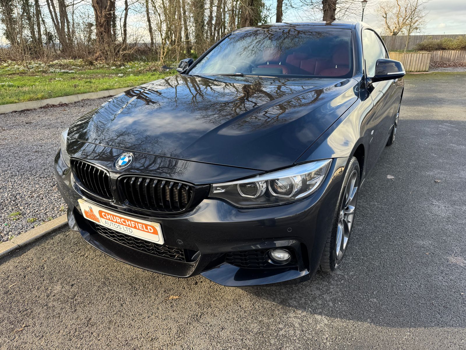 This BMW 435d M Sport Coupe is every bit the ultimate driving machine - it is unbelievably quick and responsive, yet smooth and precise and goes exactly where you point it. Anyone familiar with BMW will know just how special the 35d twin turbo diesel engine really is, and thanks to its xDrive 4wd system it leaps off the mark with phenomenal pace which is guaranteed to put a smile on your face! But it is also an extremely comfortable and easy car to drive thanks to its 8 speed auto gearbox which seamlessly shifts up and down as required. This example is finished in striking black metallic bodywork which is complimented by newly refurbished 18" grey alloy wheels and privacy glass - but the real showstopper is its stunning coral red leather upholstery which is simply gorgeous! This car has an excellent specification including the wide screen Professional Sat Nav, electric memory drivers seat, Angel Eye LED lights, heated seats, parking sensors with visual display, auto lights and wipers, DAB radio, multi function steering wheel, cruise control, Bluetooth and much more. This car has been well maintained and will come supplied with a fresh service and MOT prior to sale, plus it is also fully ULEZ and Clean Air Zone compliant. If you want a car that will put a smile on your face every time you drive it, look no further than this! All vehicles supplied by Churchfield Autos Ltd are fully mechanically inspected, history checked and come with 3 month comprehensive warranty. Flexible finance options and extended warranties are available, please ask for further information or visit our website for more information. Please contact us before coming to view to ensure we are on site and ready to help. If you have any questions or queries please do not hesitate to get in touch.