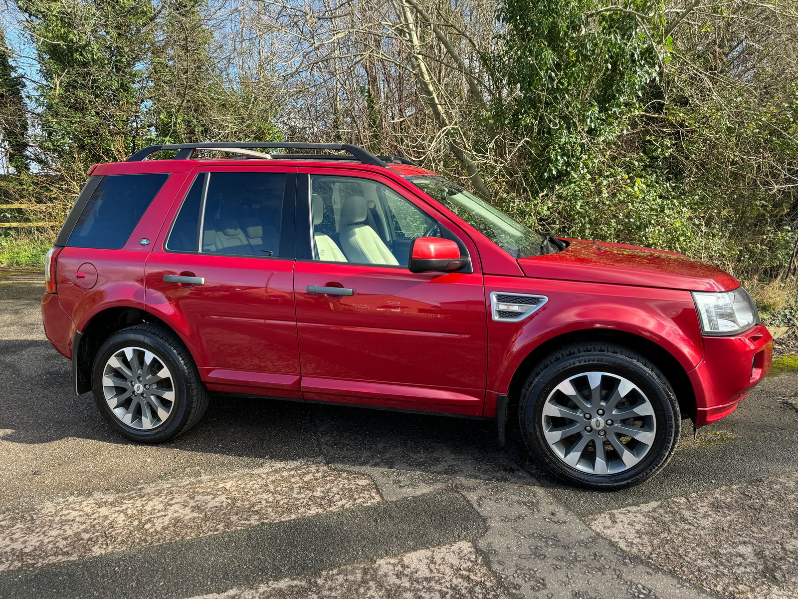 Land Rover - the vehicle that will take you anywhere you want in style, luxury and comfort! This Freelander 2 is an incredibly capable on and off road vehicle with a full 4wd system with selectable terrain modes and off road features like downhill speed control - yet the inside offer sheer luxury in the form of its armchair like comfortable full leather seats with independent armrests and an elevated seating position that makes you feel like you are king of the road. The car is finished in a beautiful Firenze Red metallic paint and is contrasted by stunning ivory leather on fully electric memory seats, and highlighted even more by the floods of light from its twin panoramic sunroofs. The car features a raft of equipment including parking sensors, bluetooth phone, heated seats, isofix, auto lights and wipers, privacy glass, 19" diamond cut alloys and loads more! The car has been well maintained including a recent haldex service, rear diff bearing, new intercooler and a full service all within the last year, along with 4 brand new matching continental tyres on - this car runs and drives flawlessly. All vehicles supplied by Churchfield Autos Ltd are fully mechanically inspected, history checked and come with 3 month comprehensive warranty. Flexible finance options and extended warranties are available, please ask for further information or visit our website for more information. Please contact us before coming to view to ensure we are on site and ready to help. If you have any questions or queries please do not hesitate to get in touch.